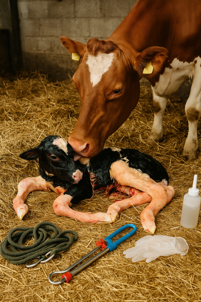 โ๏ธ Calving ropes or chains โ used carefully to help guide delivery.