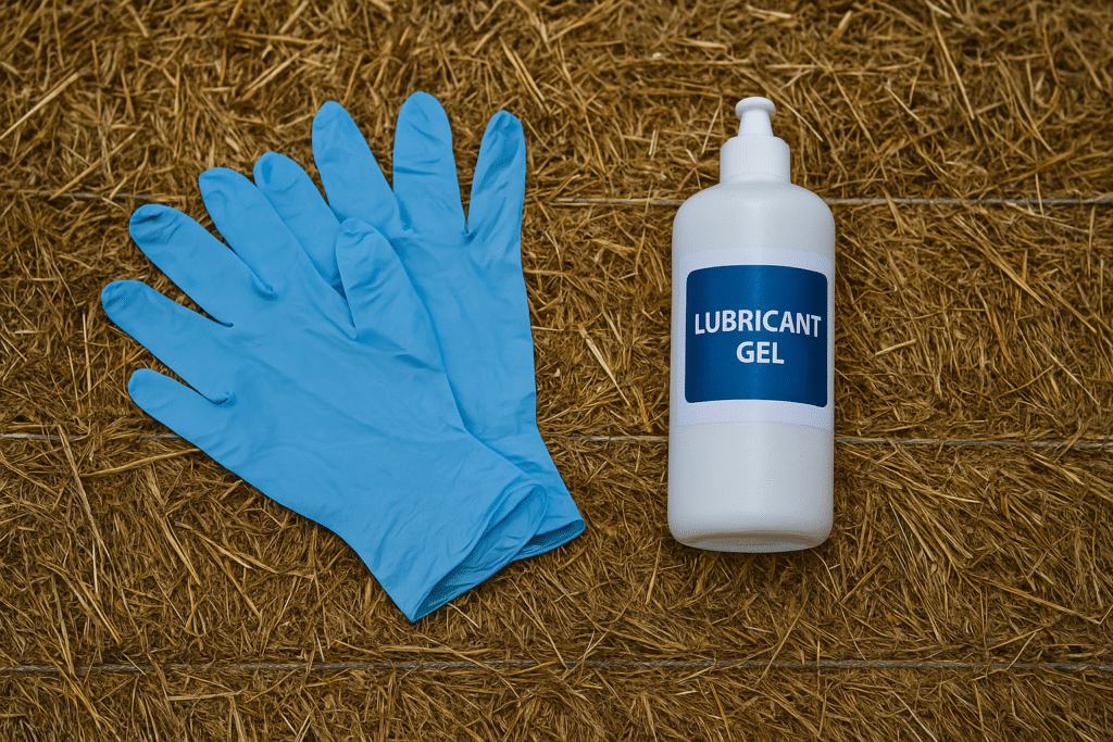 ๐งค Gloves + lubricant โ hygiene and cow comfort.